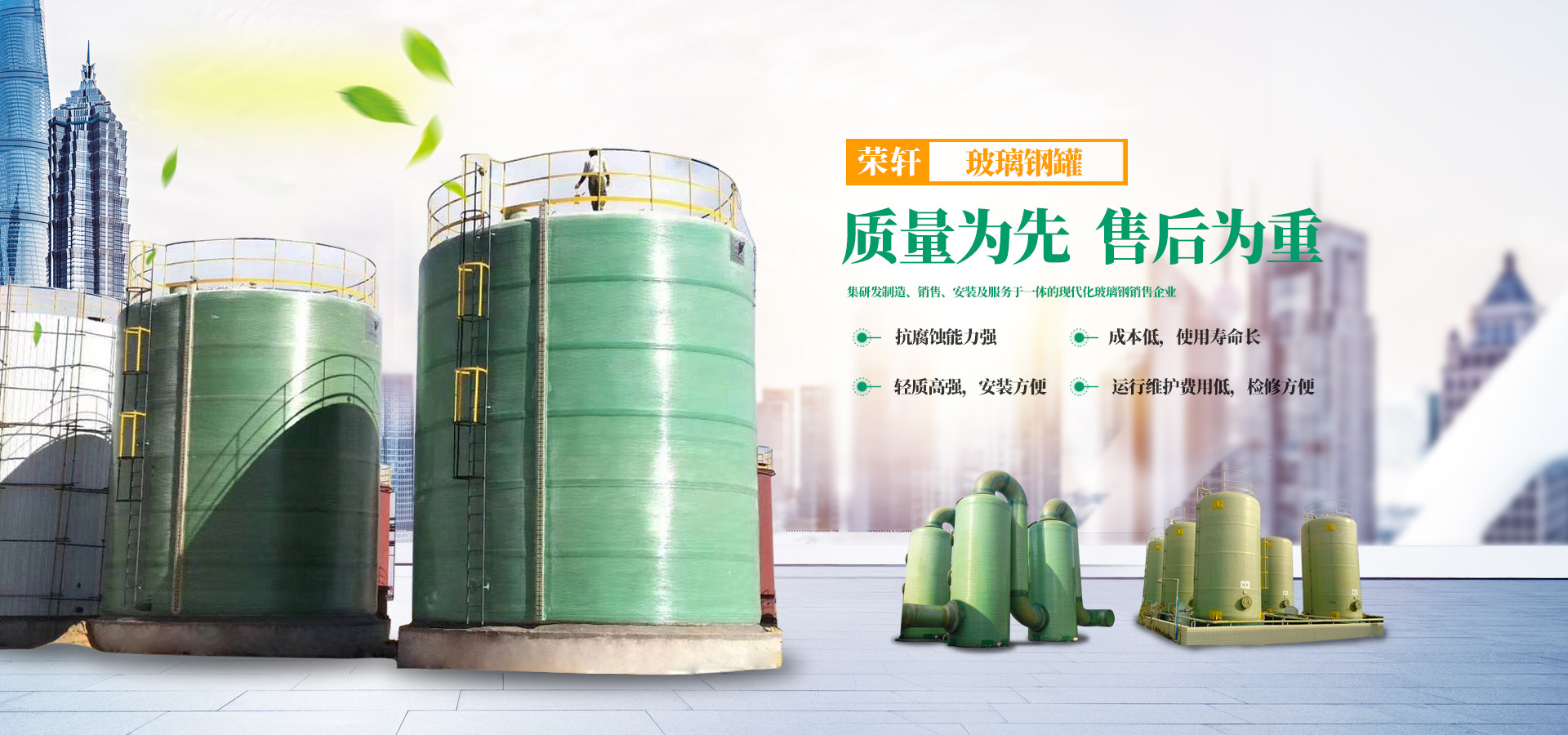 潍坊市荣轩环保主要生产:各种规格玻璃钢管道、玻璃钢管件、玻璃钢罐、玻璃钢冷却塔、玻璃钢吸收塔、玻璃钢脱硫塔、玻璃钢烟囱、玻璃钢化粪池、化工设备、环保设备等玻璃钢制品,品种齐全、品质优良、畅销全国。业务涵盖:规划设计、加工制造、安装调试、售后服务、研发创新等。